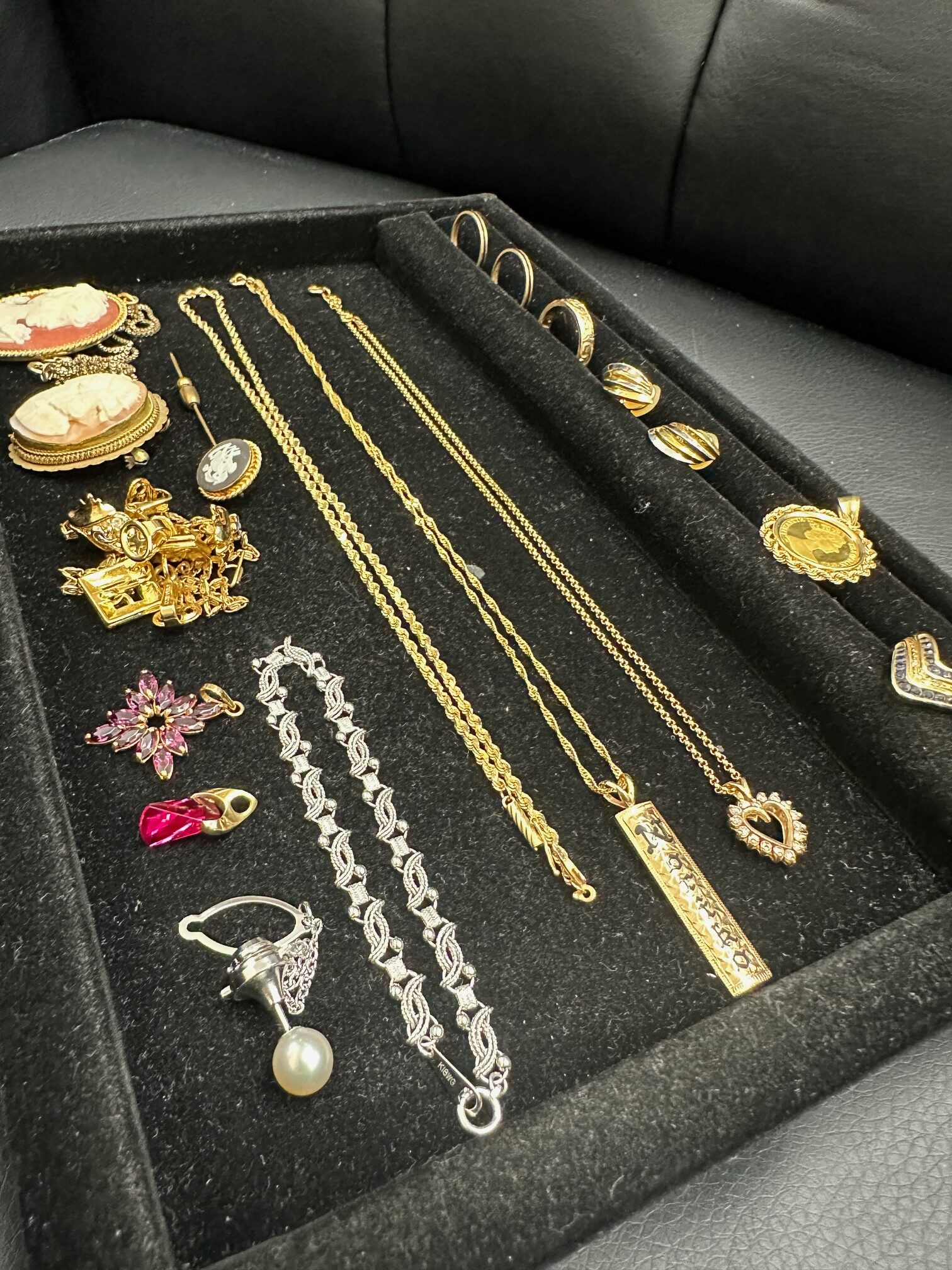 キャット金貨、カメオ、ルビー、パール、ダイヤモンド他、色石付アクセサリーのお買取りさせていただきました♬