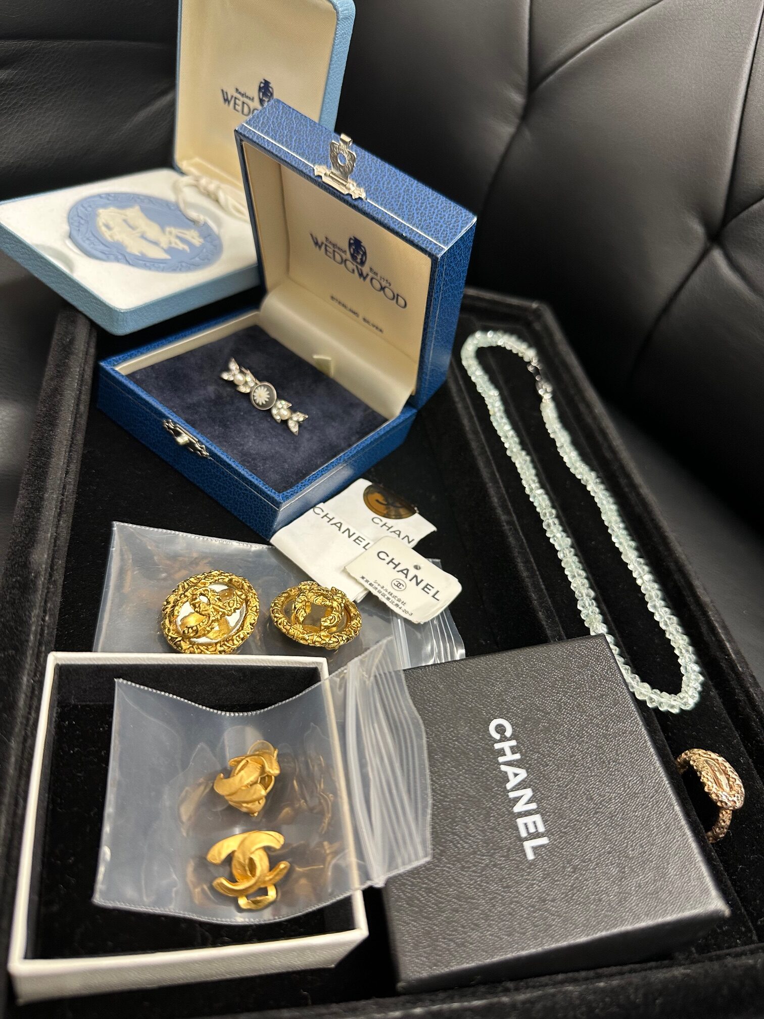 知立市からお越しのリピーター様より、シャネルのイヤリング数点と、ウェッジウッドのブローチ、その他貴金属のお買取りをさせていただきました(*´▽`*)