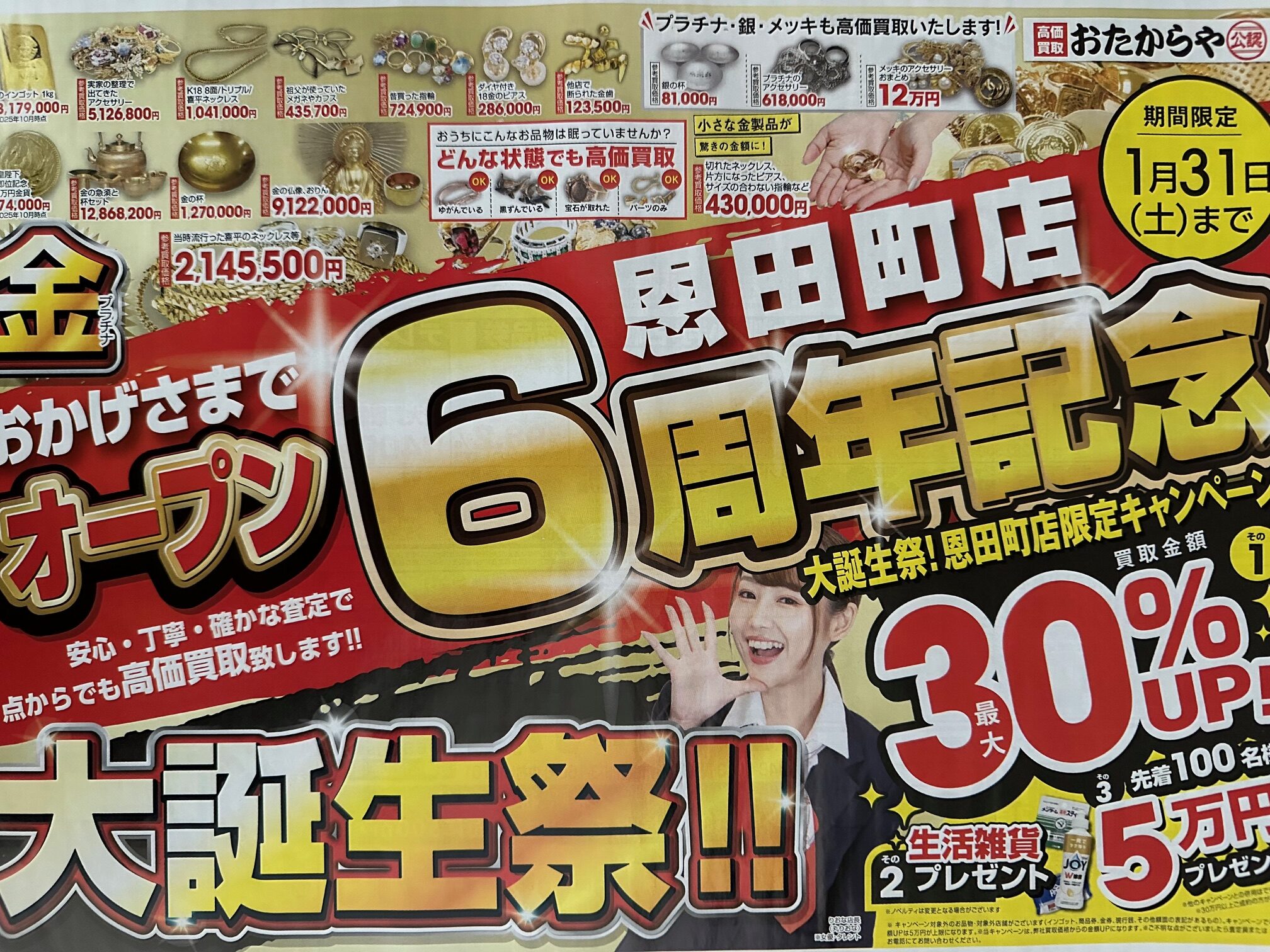 あけましておめでとうございます(^O^)/2026年1月!おたからや恩田町店6周年記念!大誕生祭開催!!