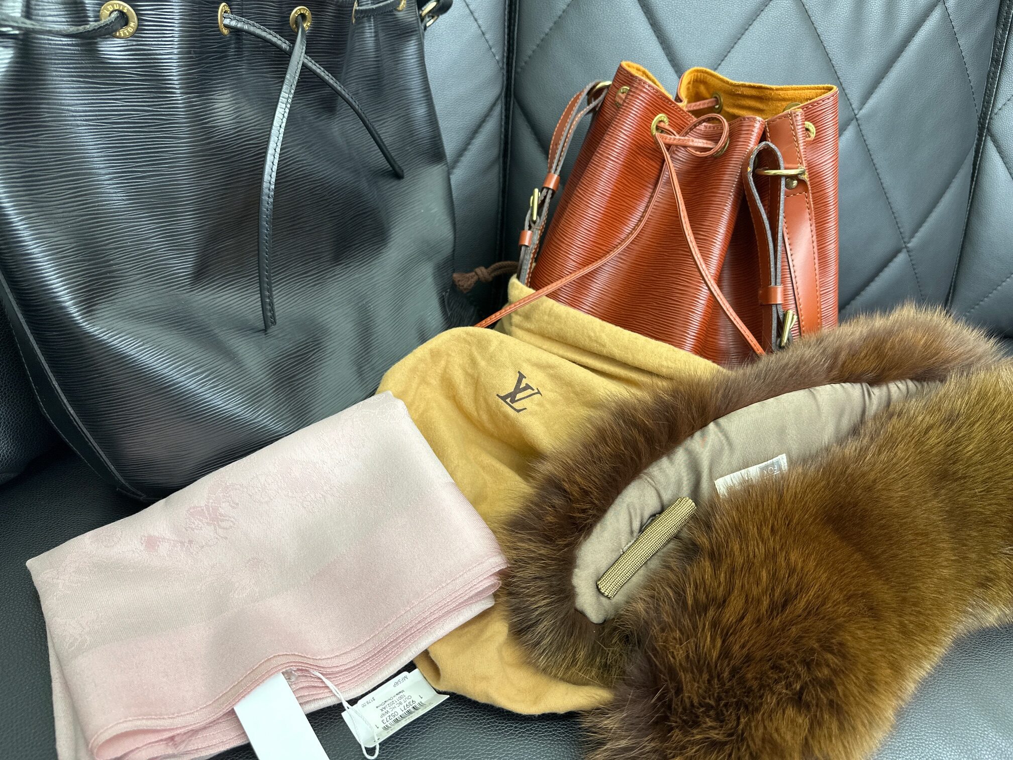 知立市からお越しのお客様より、ルイ・ヴィトン エピのノエ各色、コーチの未使用のストール、サガフォックスのファーなどのお買取りをさせていただきました(*^-^*)