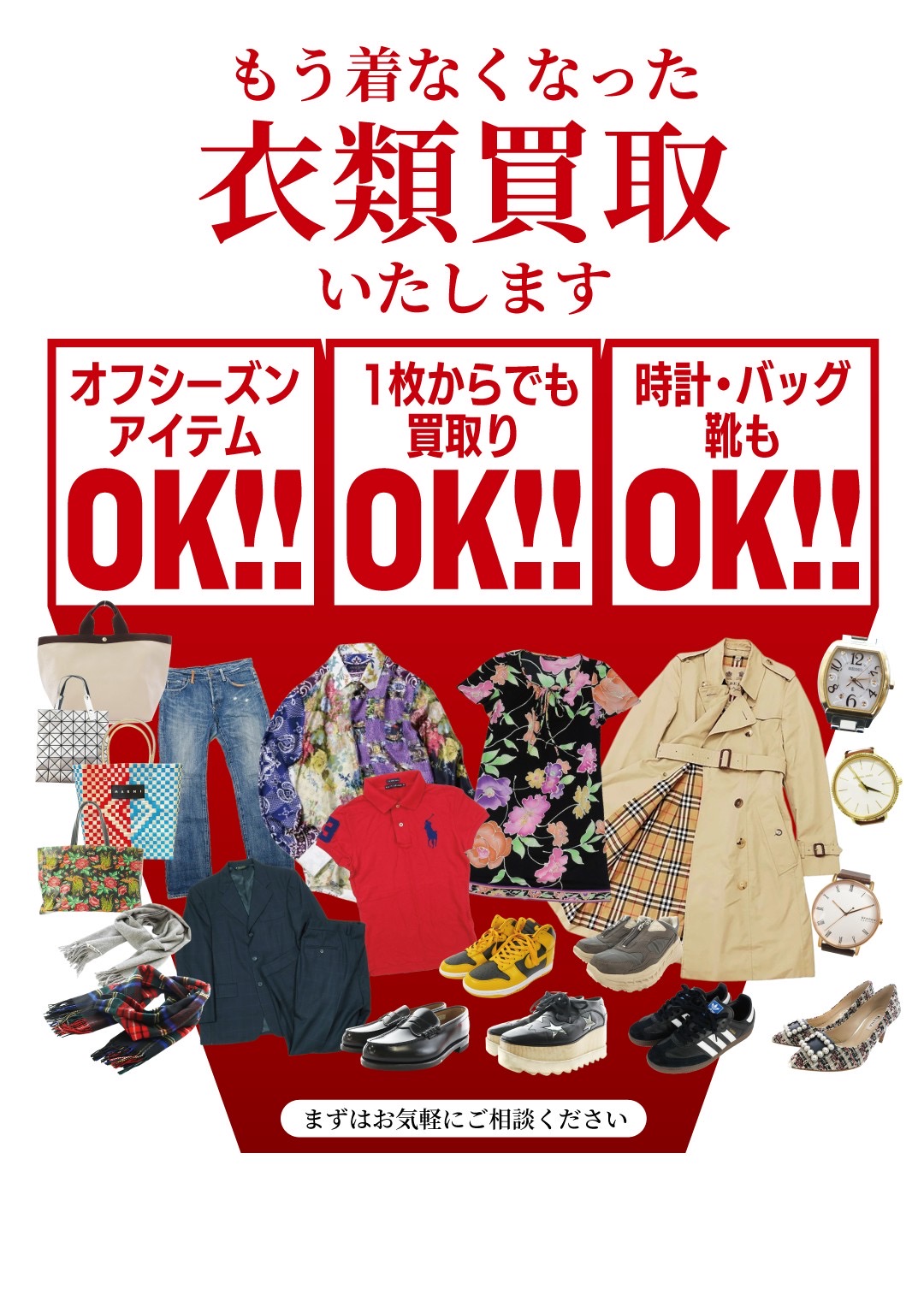 ブランド衣類、小物、買取強化キャンペーン中♬